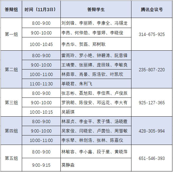 2、现场答辩:采取线上答辩的方式进行,选择现场答辩的学生先完善论文进度表,答辩时间2024年11月3日(星期日)上午,用腾讯会议进行答辩。