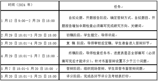 2024年春季学期毕业设计(论文)工作从2024年1月12日起至5月25日前结束,现将相关工作通知如下: