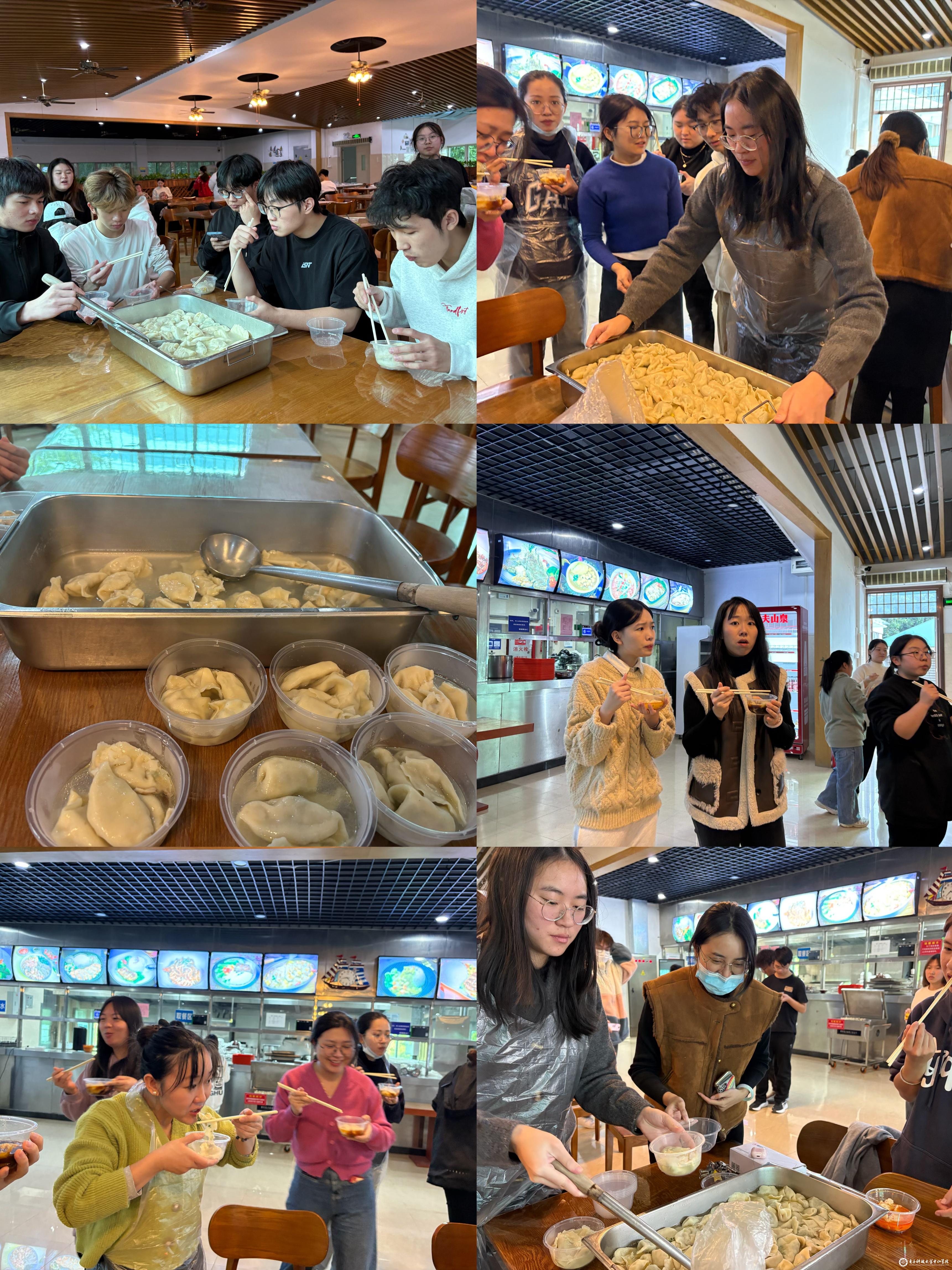 当天下午,在凤翔餐厅三楼,笑声连连,节日的喜悦洋溢在每个同学的脸上。老师与同学们分工协作,揉面、擀皮、调馅、包饺子,每一个步骤都认真对待,每一个细节都倾注了满满的心意。活动期间,老师们不仅传授了包饺子的技巧,还与学生们亲切交流,询问他们的学习与生活情况,同学们也积极参与其中,他们相互学习、相互帮助,共同完成了一个个形态各异的饺子。有的饺子小巧精致,宛如艺术品;有的饺子则略显“豪放”,但那份纯真与热情却让人倍感亲切。在欢声笑语中,师生欢聚一堂,共同体验传统民俗的魅力,感受家的温暖与团圆的美好。