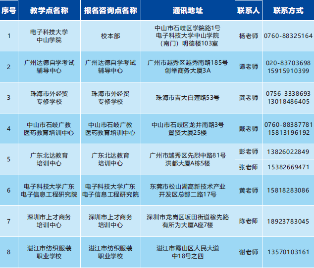 报名咨询地点:电子科技大学中山学院(南门西侧100米)明德楼103室